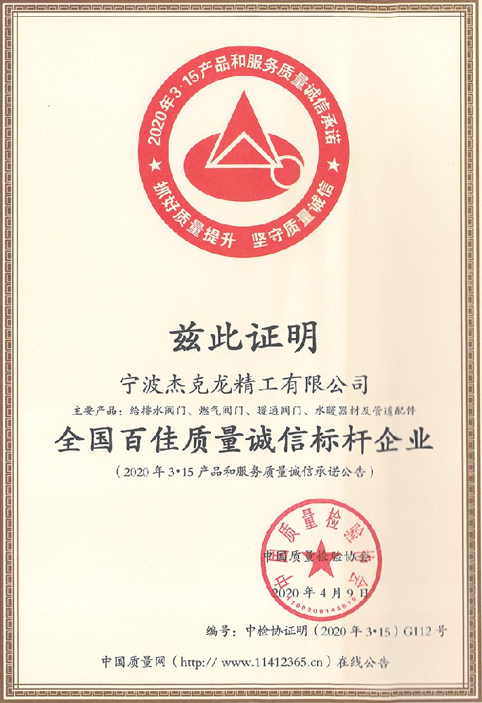 全國百佳質(zhì)量誠信標(biāo)桿企業(yè)